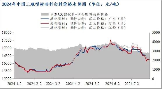 截止7月底,鋁價(jià)相對(duì)5月底高位時(shí)期下跌2800元/噸左右,下跌12.9%。而7月底再生鋁棒主要廢鋁原料之一的型材舊料白料價(jià)格在16250-16350元/噸,相比21700元/噸的鋁價(jià)高位時(shí)期,舊白料價(jià)格下跌1150-1200元/噸,下滑6.60%左右,廢鋁價(jià)格下跌幅度遠(yuǎn)不及鋁價(jià)。在鋁價(jià)持續(xù)回落的單邊行情下,廢鋁貨場(chǎng)來(lái)不及出貨,持續(xù)處于虧損狀態(tài)。受成本端支撐,貨場(chǎng)挺價(jià)惜售意愿較強(qiáng),市場(chǎng)上廢鋁流通量大幅減少,再生鋁棒企業(yè)采購(gòu)困難,成本拉升。