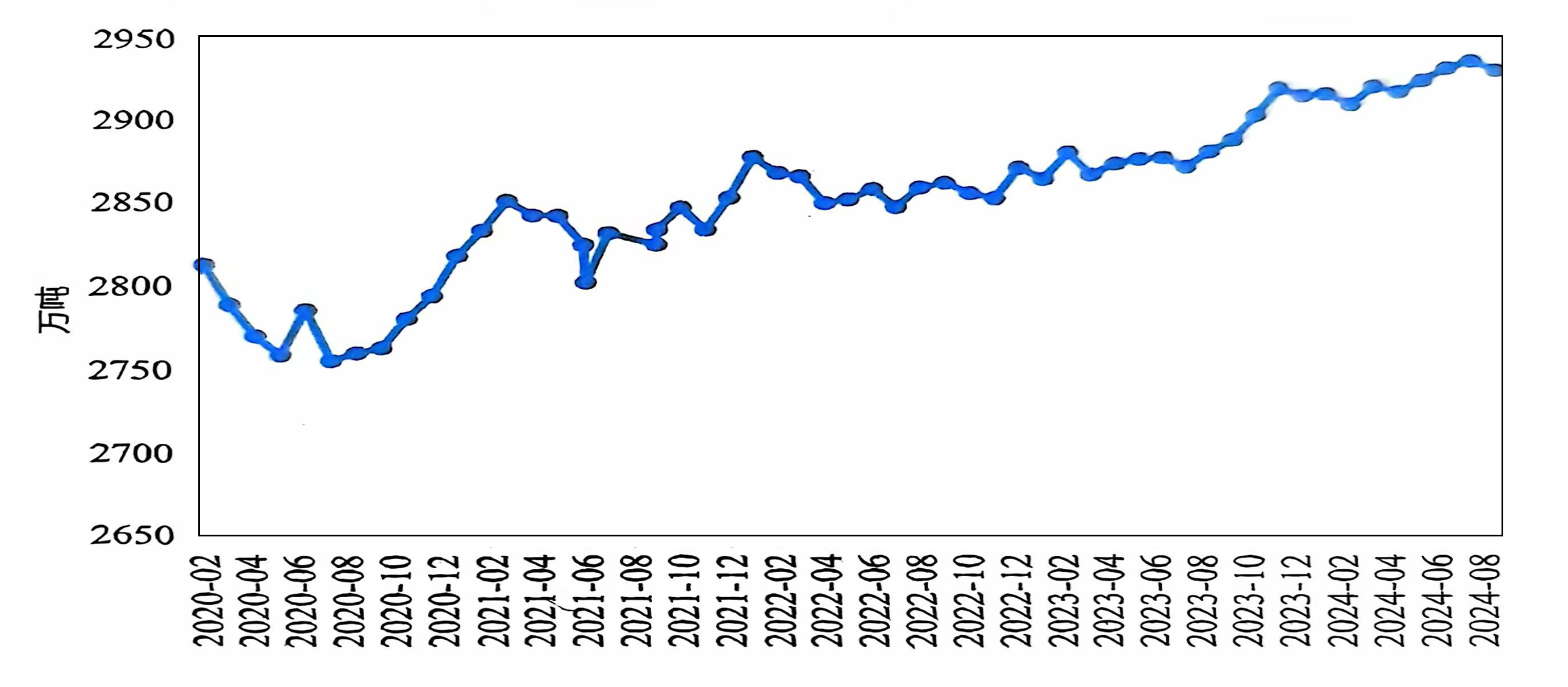 2024年9月,國內(nèi)電解鋁繼續(xù)保持穩(wěn)定生產(chǎn)。9月國內(nèi)電解鋁建成產(chǎn)能4462萬噸/年,運行產(chǎn)能4351萬噸/年,較上月增加5萬噸/年,為四川啟明星技改項目順利完畢。9月份產(chǎn)量為360萬噸,環(huán)比下降3.1%,同比增長1.8%,日均產(chǎn)量12.0萬噸,環(huán)比增長0.1%。