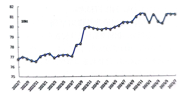 經(jīng)調(diào)整,7月份產(chǎn)量為376.4萬噸預(yù)計8月份產(chǎn)量為376.5萬噸,同比增長1.2%,環(huán)比基本持平。