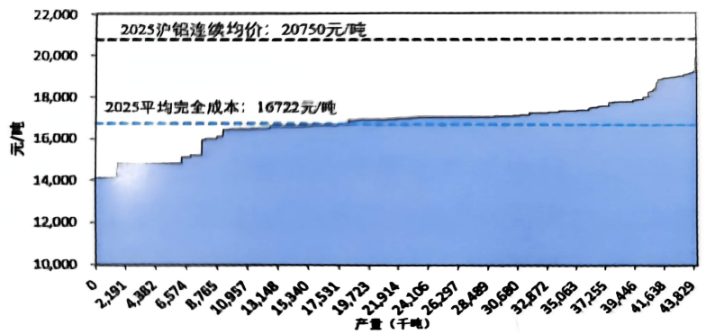 圖1-5 2025年中國(guó)電解鋁行業(yè)產(chǎn)能成本曲線