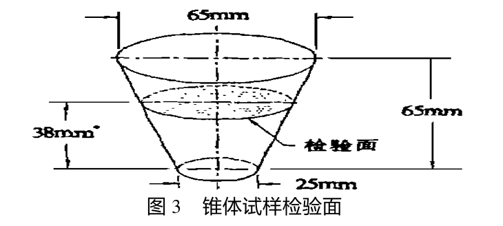 距底部38mm的橫截面為標準檢驗平面 ( 圖3) 。為此, 從距底部40mm 處與軸線呈正切方面切取試樣,在截體側面打上試樣號。