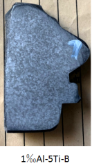 使用未添加Al-5Ti-0.2C的AlSi12合金液澆注一只按正常工藝添加方法加入1‰Al-5Ti-1B絲的活塞,對(duì)比細(xì)化效果 |